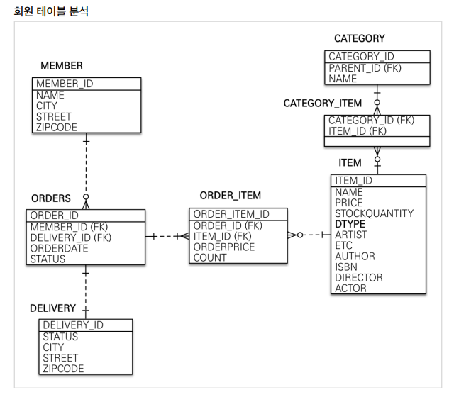 @ManyToMany 는 편리한 것 같지만, 중간 테이블( CATEGORY_ITEM )에 컬럼을 추가할 수 없고, 세밀하게 쿼리를 실행하기 어렵기 때문에 실무에서 사용하기에는 한계가 있다. 중간 엔티티( CategoryItem 를 만들고 @ManyToOne , @OneToMany 로 매핑해서 사용하자. 정리하면 다대다 매핑을 일대다, 다대일 매핑으로 풀어 내서 사용하자.