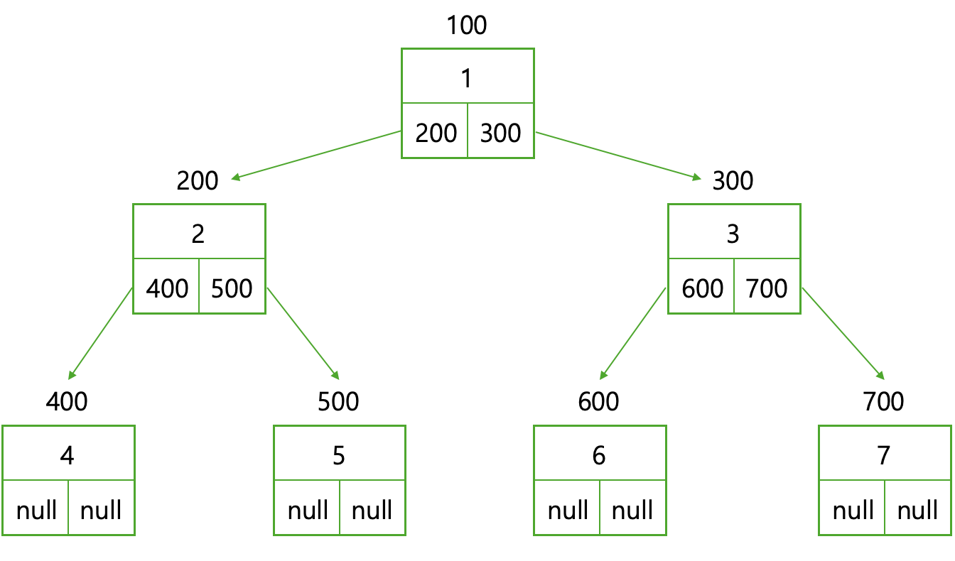 다음으로 1 ~ 7은 각각의 노드의 data이다.